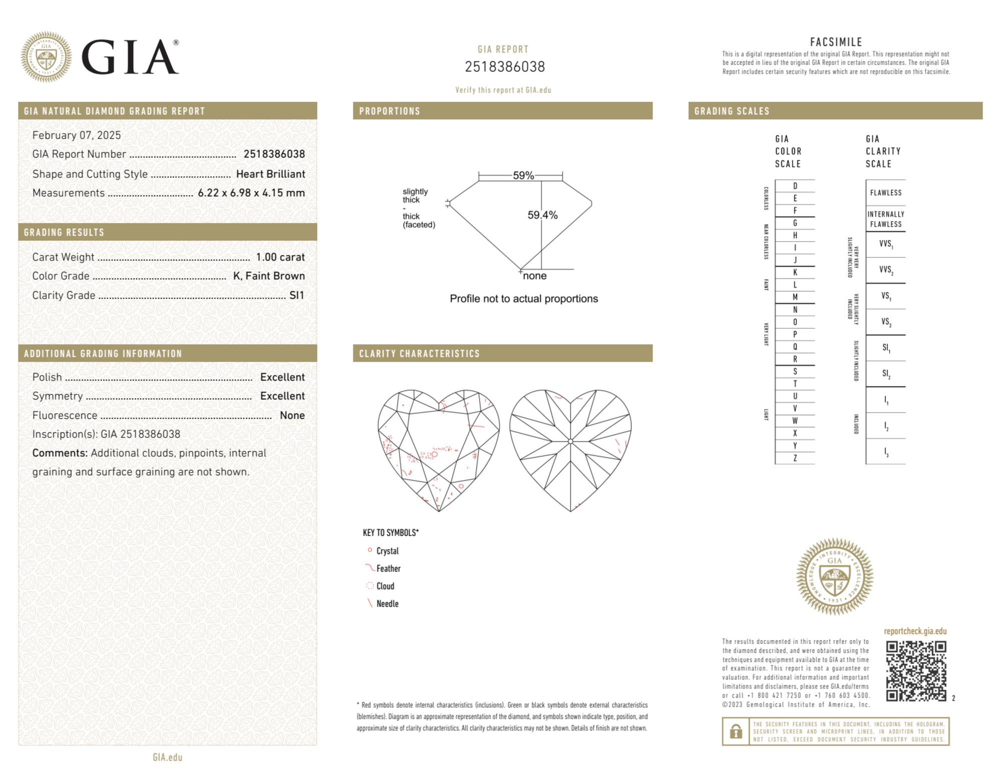 Your 1.00 carat Heart natural diamond is graded K color (Faint Color), and you can read more about K color diamonds here.